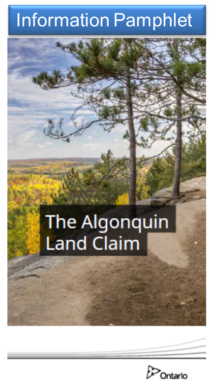 For more information you may contact the Ontario Information Centre on the Algonquin Land Claim at 855-690-7070 or 613-732-8081 or by email at alcinfo@ontario.ca or visit: